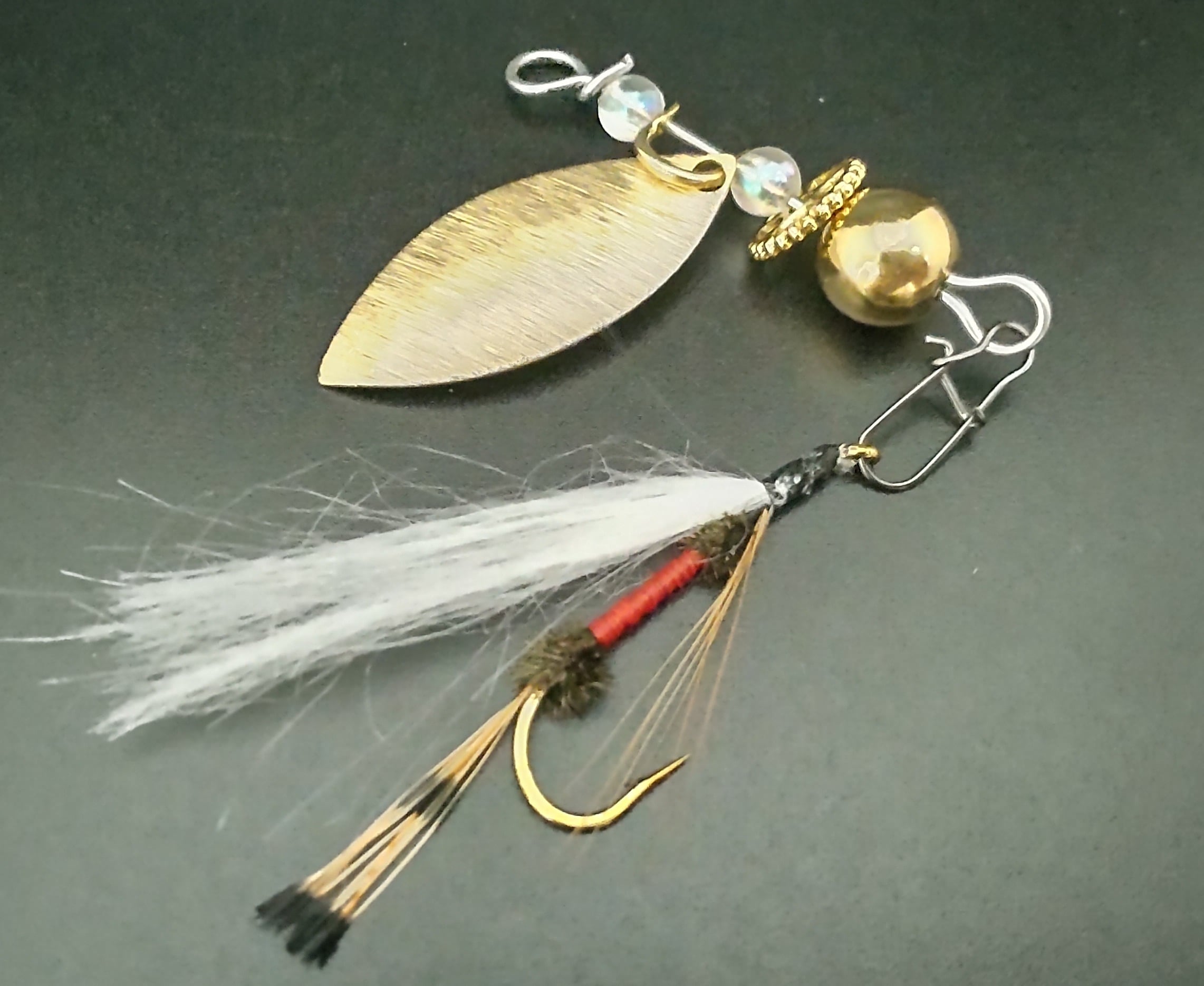 アーネスト・ヘミングウェイらも愛したフライフィッシングは、そのすべてがまさに芸術のように美しい釣りです。ルレリアでは、スピナーのフックにフライを装着。真鍮製ウィローブレードの艶めかしいフラッシングと、揺れ動くフライがあらゆる目を釘付けにします。