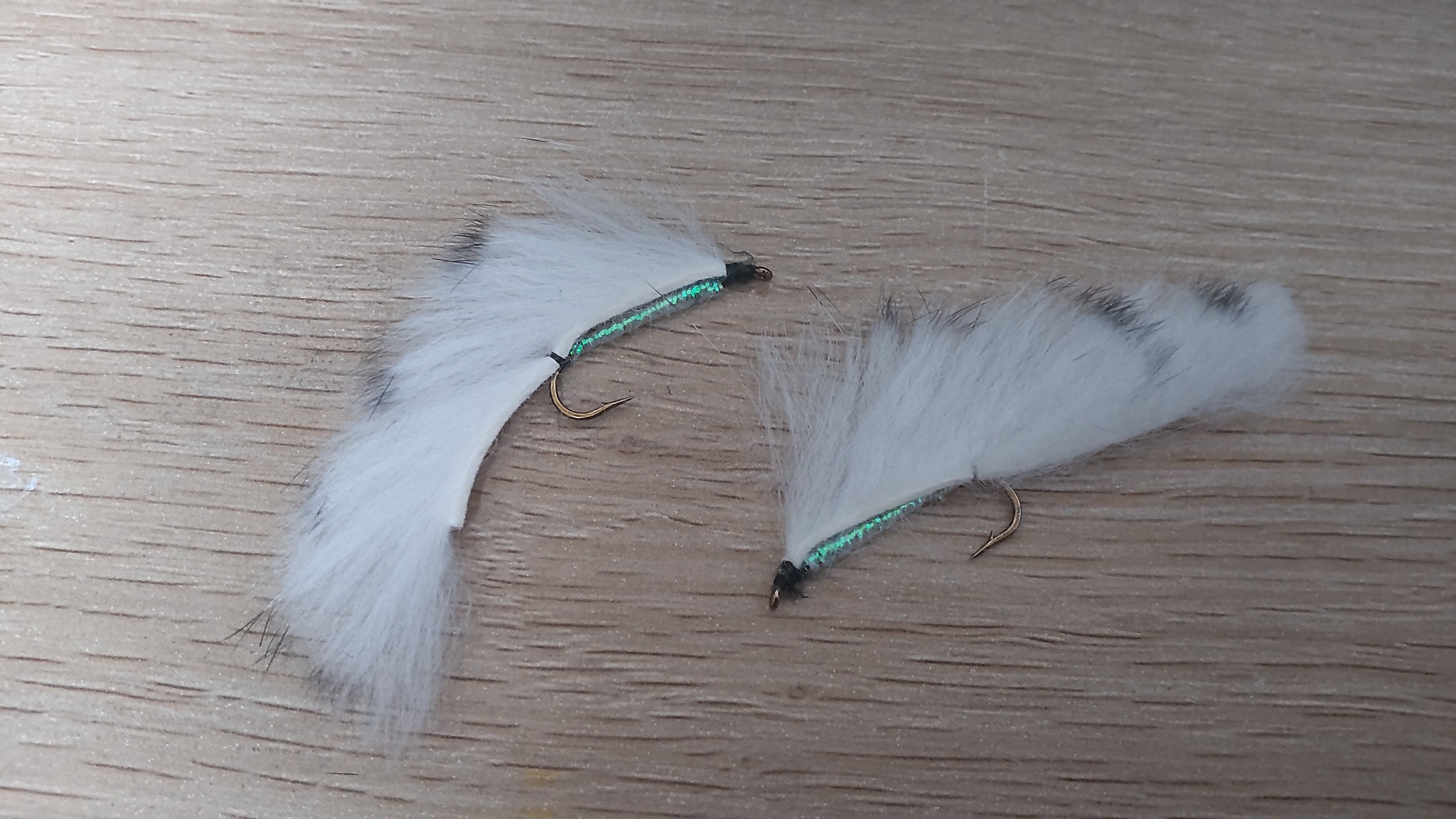 エンドホワイトは先端部にわずかに黒色を呈したホッキョクギツネのような美しいテープを使用。このコントラストが魚の目を釘付けにする。